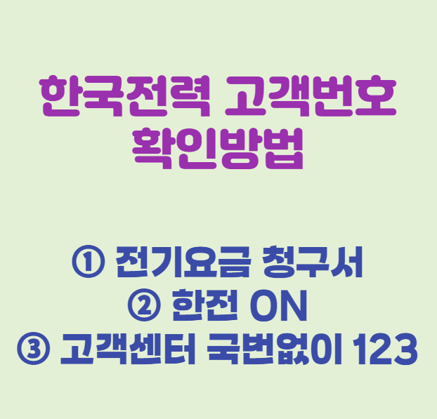 - 한전 고객센터로 문의(국번없이 123)하시면 전기요금 고객번호 확인이 가능